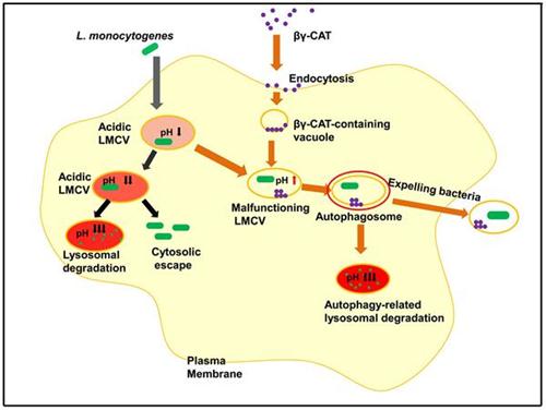 Intracellular pathogens, including bacteria, viruses and fungi, can exploit various strategies to adapt or modify the cellular environment to escape from host immune defense. Many intracellular pathogens exploit cellular endocytic organelles to invade the host cell and have adapted to the intracellular drop in pH along the endocytic pathway to establish their niches and/or to activate penetration. Exogenous chemicals, such as NH4Cl and Chloroquine, can modify the acidic environment of endosomal compartments to inhibit productive infection of some viruses and intracellular parasites. However, whether the host cell has the corresponding defense strategy, the identification of the endogenous effector molecule machine and the regulatory network or not are important scientific issues have been explored but not always succeeded.