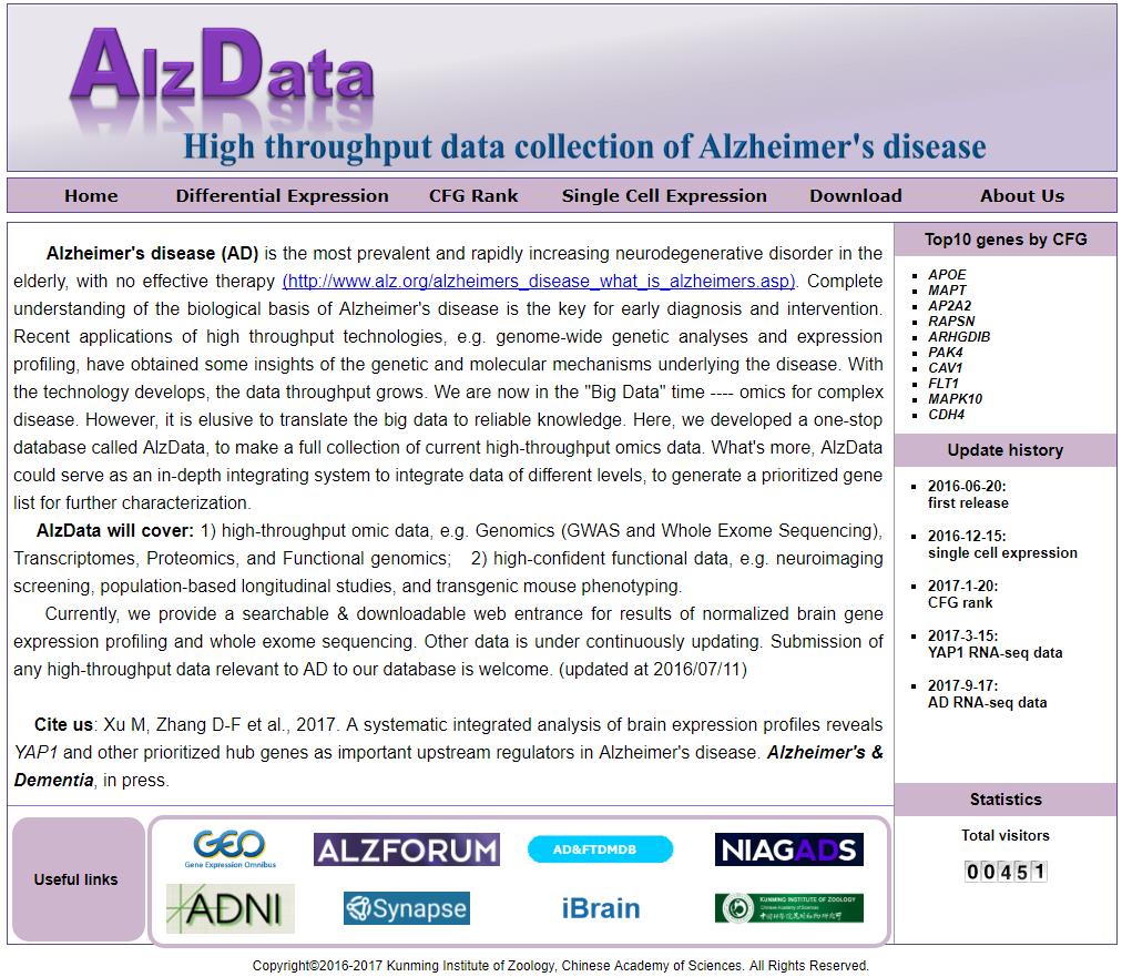To promote public sharing of AD-related data, they constructed a webserver AlzData (http://www.AlzData.org) for easy access to their results and other high throughput data.