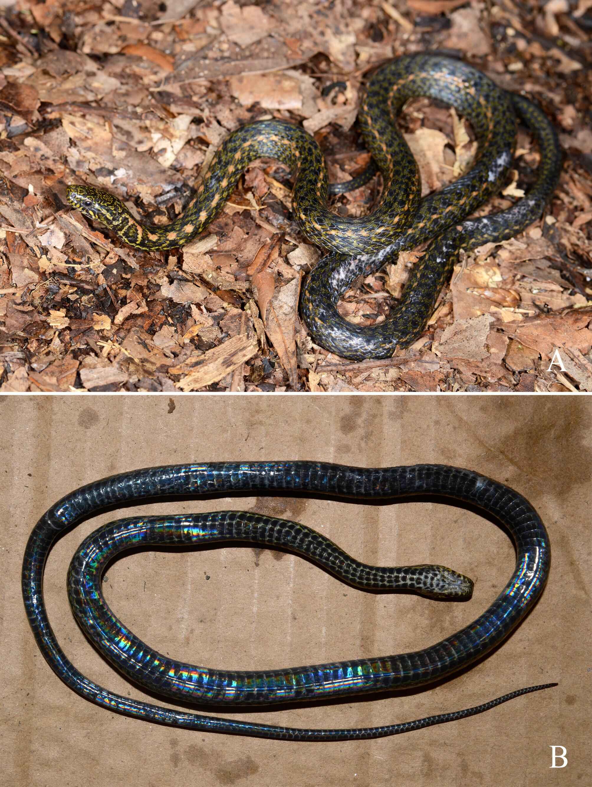 Figure 2. General aspect of Hebius chapaensis, showing coloration in life, (A) Lateral view; (B) Ventral View