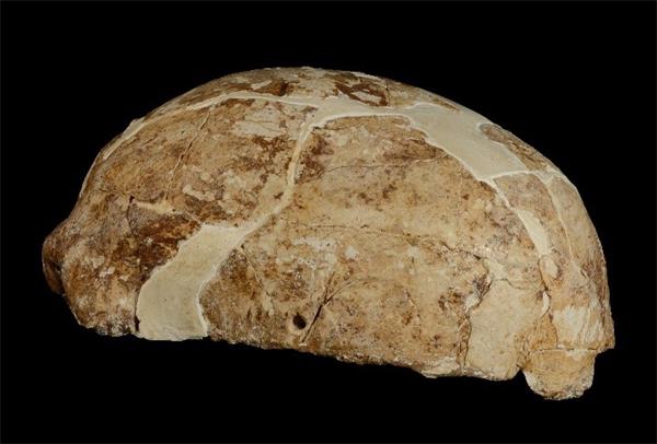 The skull of Mengziren (MZR) unearthed from Red Dear Cave (left: anterior view; right: lateral view)