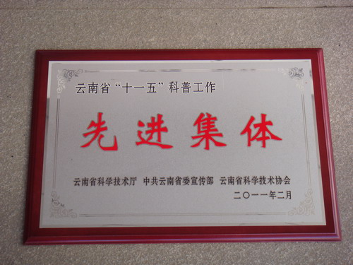 On March 1, 2010, the Yunnan Provincial Science and Technology Hall, the Provincial Party Committee Propaganda Department and the Provincial Association for Science and Technology (YúnKēFǎFā (2011) 5th) jointly issued a statement declaring that the Kunming Natural History Museum of Zoology be awarded the title of "advanced group" for its work on improving public awareness of science during Yunnan Province’s "11th Five-Year Plan."