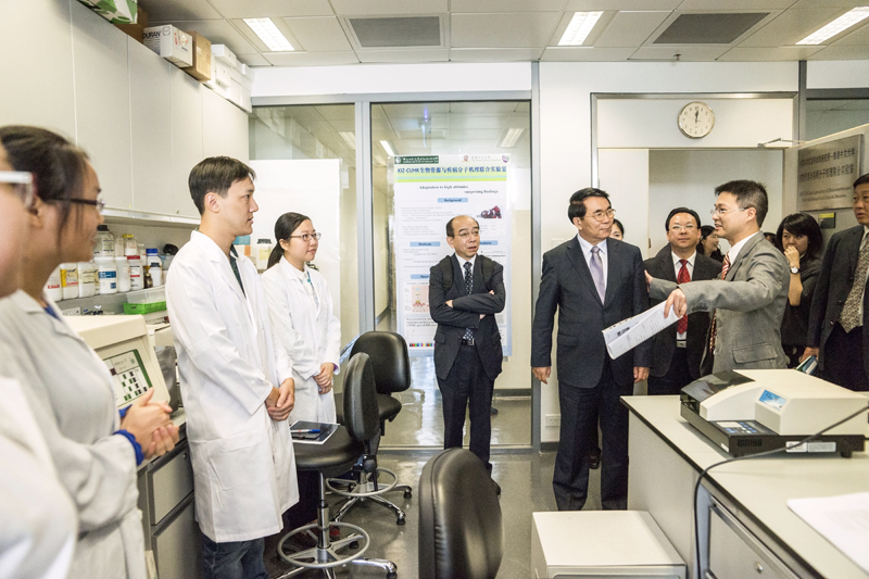CUHK representatives gave reports to President Bai about the recent development of the University and the research achievements of the CUHK-CAS joint research units. Discussions on the progress of the joint units were held. The delegation next paid visit to the joint laboratories between CUHK and CAS housed under the School of Biomedical Sciences for a closer look of the recent research projects and meeting with relevant members to enhance communication.