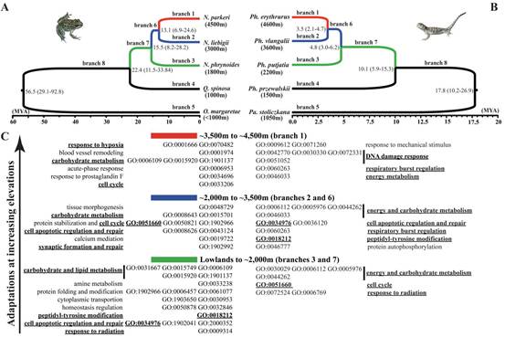 Groups of organisms that are broadly distributed with respect to diverse elevations provide an excellent opportunity to study the genetic basis of HEA. Although many cases of genetic adaptations to high elevations have been reported, the processes driving these modifications and the pace of their evolution remain unclear. Since most high-elevation lineages of the Qinghai-Tibetan Plateau appear to have colonized from low-elevation areas. These lineages provide an opportunity for studying recent HEAs and comparing them to ancestral low-elevation alternatives.