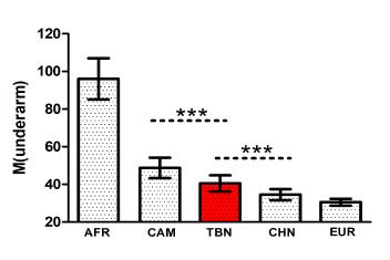 It is well known that the adaption of humans to UV radiation is to increase the production of melanin in the skin for protection. Therefore, among the world populations, those living near the equator (such as Africa and Southeast Asia) usually have dark constitutive skin color (the skin areas not exposed to sunlight, such as buttock and underarm). Notably, the intensity of UV radiation at the Qinghai-Tibetan Plateau is much stronger than most of the lowland areas( lowland cities at the same latitude, and even higher than those of Southeast Asian countries). Accordingly, both the constitutive and facultative (the skin area exposed to sunlight, such as forehead) colors of Tibetans are relatively dark, though the underlying genetic regulation conferring the dark skin is yet to be understood.