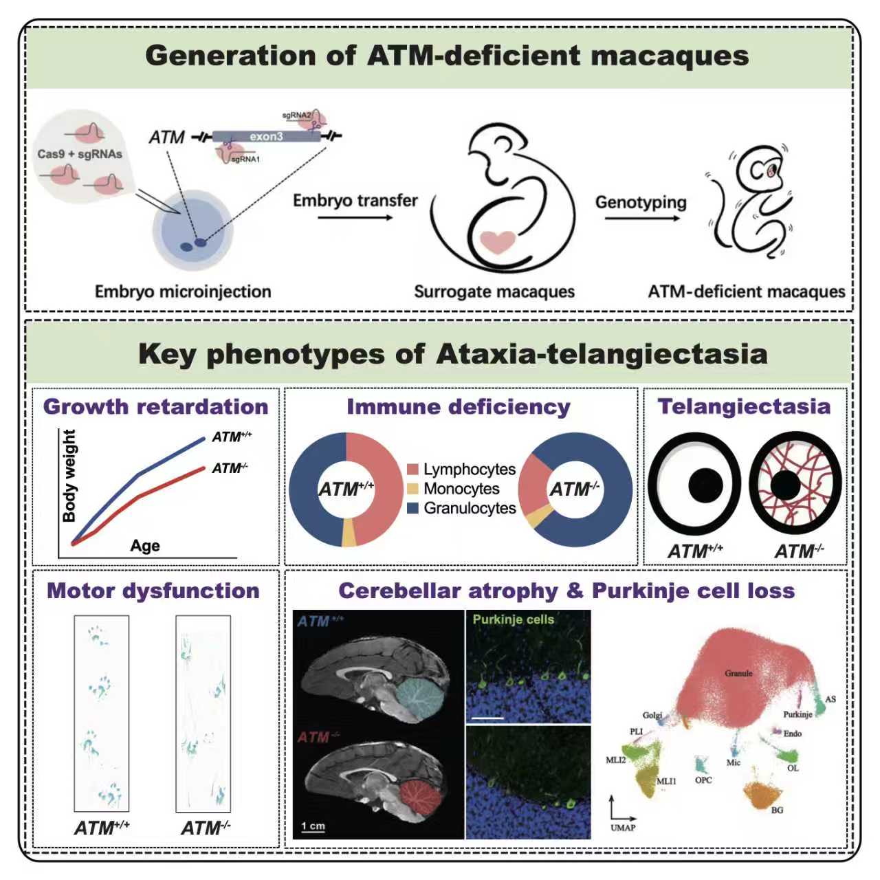 A research team at the Kunming Institute of Zoology, Chinese Academy of Sciences, has successfully created the world’s first primate model of Ataxia-Telangiectasia (A-T), a rare and devastating childhood neurodegenerative disorder. The breakthrough study was published today in Cell Reports Medicine.