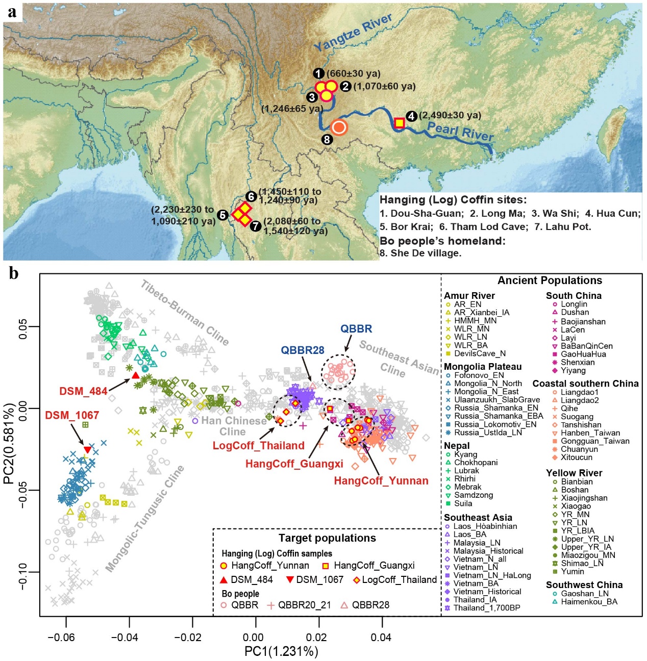A recent study published in Nature Communications reveals a direct genetic link between ancient practitioners of the Hanging Coffin burial tradition and the modern Bo people of Southwest China. Through comparative genomic analysis of 11 ancient individuals from four Hanging Coffin sites in China, four from Log Coffin sites in Thailand, and 30 whole genomes from the contemporary Bo population, Professor ZHANG XiaoMing of Kunming Institute of Zoology, and cooperating teams, have uncovered the deep ancestral origins and migratory history associated with this unique mortuary practice.